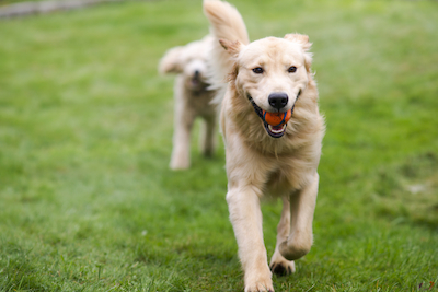 Happy Golden Retreiver Dog with Poodle Playing Fetch Dogs Pets